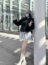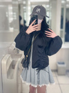 ウエストラインを引き立てるショート丈が、メリハリのあるフォルムを作る。