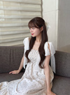 軽やかな素材に水玉柄をあしらい、遊び心をもたらしたワンピース。ショルダー部分のリボンがアクセントになり、肩の露出を調整可能。