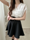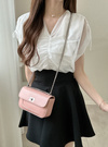 ふんわりとしたチュールを重ねた、エアリーなフレンチスリーブトップス。Vネックが顔まわりをすっきりと見せ、エレガントなエッセンスを添える。