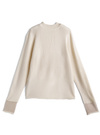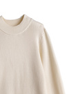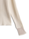 着心地の良いリブニットで仕立てた、品のある洗練された雰囲気のトップス。袖口部分にあしらった異素材のシアーデザインがアクセントに。