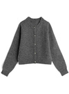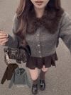ボリューミーなエコファーの襟が視線を集める、華やかさたっぷりのカーディガン。柔らかいウールタッチのニットにぷっくりとしたゴールドボタンが上品な印象をプラス。