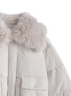 ふわふわのエコファーを使用した大きな襟デザインが印象的なアイテム。肌触りの良いファーは首元まで暖かく、顔まわりを華やかに演出してくれる。