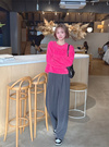 ノーマルなラウンドネックで、デイリー使いにぴったりのシャギーニットトップス。少しワイドな身幅と袖幅がリラックス感のあるシルエットを演出。