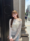 コーデを一気に女性らしくしてくれるレースを全面に使用したトップス。ショルダーにタックを入れてドレープを作ることで動きが生まれる。