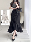 アシンメトリーなフリルラインが優雅に揺れて、洗練された印象に。