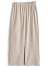 季節感のあるコーデュロイ素材で仕立てた大人っぽスカート。ストンとしたタイトシルエットがこなれた印象を与える。