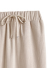 ウエストゴムでリラックス感があり、紐でお好みの履き心地に調節もできる。