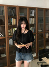 ウエストから広がったペプラムシルエットも魅力で、ベーシックなボトムスと合わせるだけでレディな着こなしが完成する。