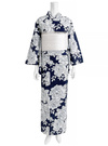 ネイビー地とホワイトの落ち着いた色合いが大人の魅力を漂わせる牡丹モチーフの浴衣。