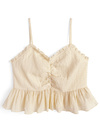ペプラムシルエットのキャミソールとセットで着用すれば、フェミニンなレイヤードスタイルに。