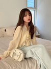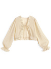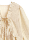 凹凸感のあるスモッキングライクなデザインが魅力のアンサンブルアイテム。ふんわりとした軽やかなフリルディテールが女性らしい印象のボレロ。