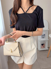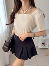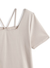 スクエアネックにストラップディテールをあしらい一癖加えたルックス。