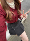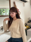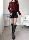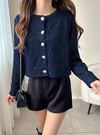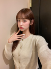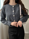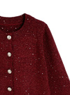 薄手ニットにスパンコールやラメ糸をミックスしたキラキラ感のあるカーディガン。存在感のあるフロントボタンが上品さを添えるアクセントに。