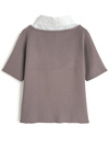 シャツとニットを組み合わせたようなドッキングデザインが特徴のトップス。襟デザインできちんと感を出しつつ、胸元にはリボンを添えてフェミニンさをプラス。