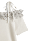 ドット柄フリルリボンオフショルダーニットトップスの商品詳細情報のページです。