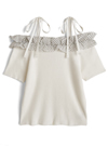 ドット柄フリルリボンオフショルダーニットトップス[fs80a]