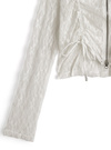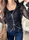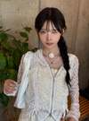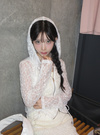 繊細なフラワーレースが魅力的な、ほんのり透け感のあるトップス。ガーリーな素材をパーカーにすることで、甘さとスポーティさをミックスさせた一着。