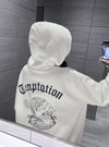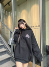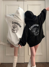 柔らかく優しい着心地の裏起毛素材を使用したスウェットトップス。胸元にはキラキラのラインストーンロゴ、バックには大胆なエンジェルプリンをあしらった存在感抜群のデザイン。