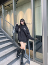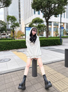 ロングパンツと合わせても、コンパクトなボトムス合わせでミニワンピースっぽい着こなしもおすすめ。