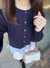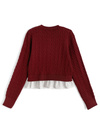 立体的なケーブル編みでクラシカルな雰囲気を漂うわせるトップス。裾にシャツ生地のフリルドッキングを施し、フェミニン要素をプラス。
