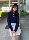 カーディガン風のボタンデザインやロゴ刺繍もアクセントに。