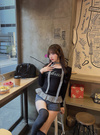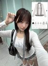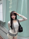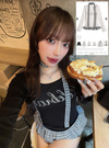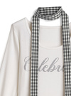 タイ付きチェック柄ドッキングラインストーンロゴトップス[fu325]