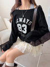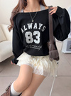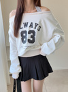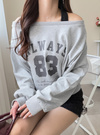ホルターネックロゴプリントオフショルダースウェットトップス[fu326]