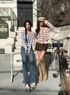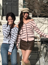 コーディネートのアクセントになるマルチボーダー柄のカーディガン。