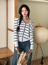 ボーダー柄ワンショルダーニットカーディガン[fu334]