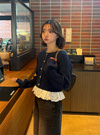 ビジューリボンレースドッキングケーブル編みニットトップスの商品詳細情報のページです。
