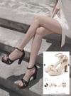 艶やかなメタルラインを織り込むことでラグジュアリーな雰囲気を醸し出すサンダル。細すぎないのにすっきりとしたヒールは、安定感があるのにスタイルアップを叶える。