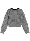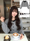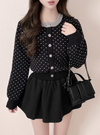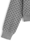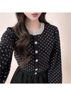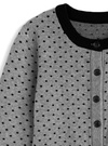 細かい水玉柄をあしらった配色デザインのクラシカルなカーディガン。程よい厚みの柔らかなニット生地で、着心地の良さも魅力ポイント。