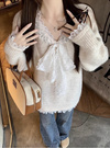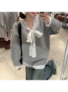 レースリボンVネックニットトップス[gf121]
