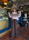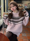 ノルディック柄とアーガイル柄を組み合わせた存在感抜群のニット。あたたかみのあるこだわりのカラーリングもポイント。