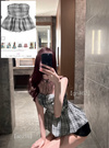 シアー生地にチェックをプリントして軽やかに仕上げたベアトップ。バスト部分にギャザーを寄せているので女性らしい自然なふくらみができる。