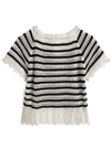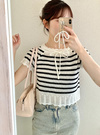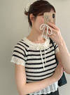 レースリボンボーダー柄ニットトップス[gn489]