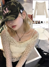 ストレッチの効いた透け感のあるレース生地が魅力のトップス。