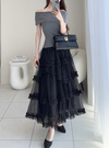 ティアードフリルチュールロングスカートの商品詳細情報のページです。