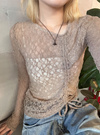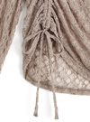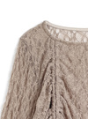 ふんわりとしたレースで仕立て、フェミニン度がぐっとアップするトップス。肩側だけに施したドロストでモード感をプラスし、ボトムにあわせて丈を調整できる。