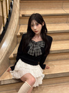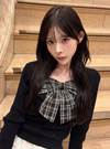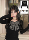 存在感抜群のチェックリボンをフロントにあしらったガーリートップス。フィット感のあるリブニット素材で、女性らしいボディラインを演出。