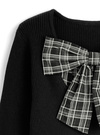 チェック柄リボンドッキングリブニットトップスの商品詳細情報のページです。
