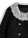 クラシカルなツイード素材に、品のあるレースカラーを組み合わせたジャケット。レースは取り外しが可能で、その日の気分で雰囲気を変えられるのも嬉しいポイント。