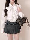 ボウタイリボンは取り外しが可能なので、シーンに合わせてコーディネートの甘さを変えられるのがポイント。
