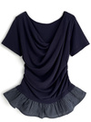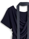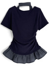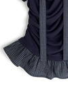 柔らかなカットソーにチェック柄のフリルをドッキングしたデザイントップス。両サイドにギャザーを寄せることで、自然なドレープフォルムをメイク。