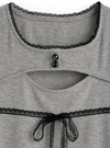 ネックラインやフロントに繊細なレースをあしらい甘めに仕上げたトップス。胸元のカッティングデザインが女性らしい抜け感を演出するポイント。
