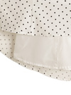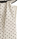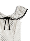 ほんのり光沢感のあるサテン素材にドット柄をのせた上品なワンピース。ネック周りにあしらったレースや胸元のリボンが愛らしいアクセント。