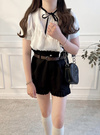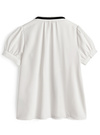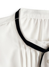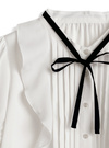 リボンは取り外せるので、簡単にベーシックブラウスにも変身できる。