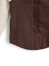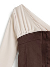 ツイルビスチェをレイヤードしたようなドッキングデザインでセンスたっぷりに仕上げた一着。