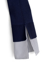 シャツを重ね着したようなデザインが魅力のドッキングワンピース。ネックや裾などから覗くストライプ柄がクラシカルな雰囲気を漂わせる。