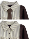ストライプシャツとプリーツスカートにニットを重ね着したようなデザインのドッキングワンピース。ウエストからふんわり広がるフレアラインが女性らしいシルエットを演出。